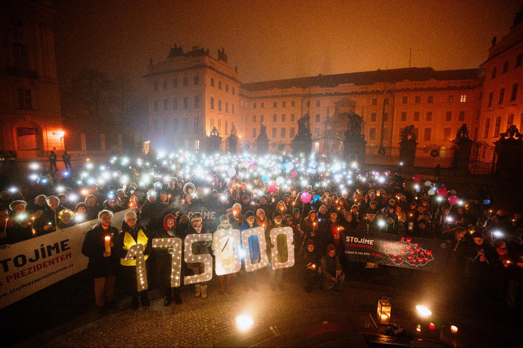 Dne 18. prosince jsme uspořádali veřejné shromáždění Světlo na Hrad, které se uskutečnilo na Malostranském náměstí a pokračovalo pochodem Nerudovou ulicí na Hradčanské náměstí. Akce se konala v předvečer Vánoc a v den výročí úmrtí Václava Havla a byla symbolicky spojena s českou prezidentskou tradicí – projevy zazněly pod sochou Tomáše Garrigua Masaryka s výhledem na Pražský hrad, sídlo prezidenta Petra Pavla. Cílem shromáždění bylo vyjádřit podporu prezidentovi a obraně demokratických hodnot v době zhoršující se mezinárodní i vnitropolitické situace a zároveň symbolicky předat více než 175 000 podpisů občanské výzvy „Stojíme za prezidentem“. Účastníci přinesli svíčky a světla jako výraz naděje, na místě mohli prezidentovi napsat osobní vzkaz a z akce si odnést Betlémské světlo.