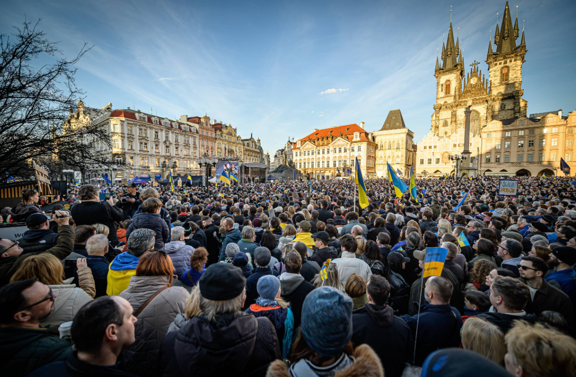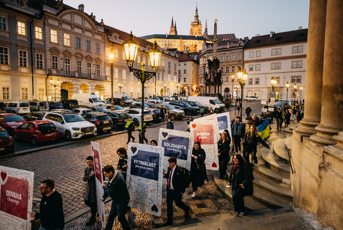Dne 23. února jsme na Staroměstském náměstí v Praze společně s organizacemi Člověk v tísni, Díky, že můžem, Paměť národa a Evropský kongres Ukrajinců uspořádali akci Společně za Ukrajinu, kde jsme si připomněli tři roky od začátku ruské agrese na Ukrajině. Tímto shromážděním jsme dali najevo, že na Ukrajinu nezapomínáme, a znovu jsme vyjádřili naši podporu svobodě, demokracii a spravedlnosti. Společně jsme vytvořili prostor solidarity, v němž jsme ukázali, že i po třech letech trvá naše odhodlání stát na straně napadené země a bránit společné evropské hodnoty.
