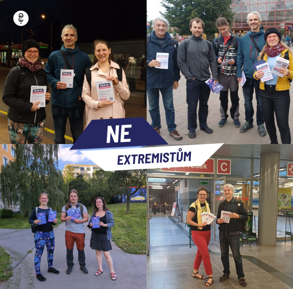 Na letní, zahřívací fázi kampaně jsme navázali zářijovou iniciativou „DESE(T) k volbám“, jejímž cílem bylo usnadnit lidem oslovovat své okolí a podporovat volební účast ve prospěch demokratických stran a finální mobilizační výzvou Ne extremistům, pod níž se podepsalo více než 64 000 občanů. Součástí horké fáze kampaně byla mobilizační videa se známými osobnostmi veřejného života i představiteli Milionu chvilek a letáky, plakáty a bannery varující před hrozbou extremismu, kterých se podařilo distribuovat po celé zemi stovky tisíc.